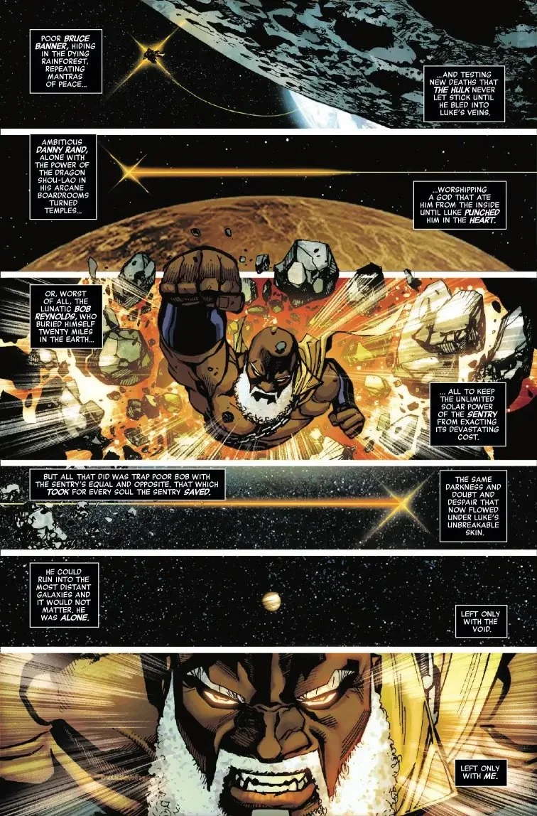 He is unstoppable. Indestructible. Incorruptible. Immortal. And utterly alone. He is POWER MAN. Ripped from the breakout story in TIMELESS, the god-slaying, Gamma-powered, Iron-Fisted, Sentry from the future Luke Cage arrives in the modern Marvel Universe, only to discover a foe, and a mystery, that will challenge even his incredible abilities! From TIMELESS scribes Collin Kelly and Jackson Lanzing and artist Bernard Chang, POWER MAN is a guided tour of the solar system that only Marvel Comics could provide!