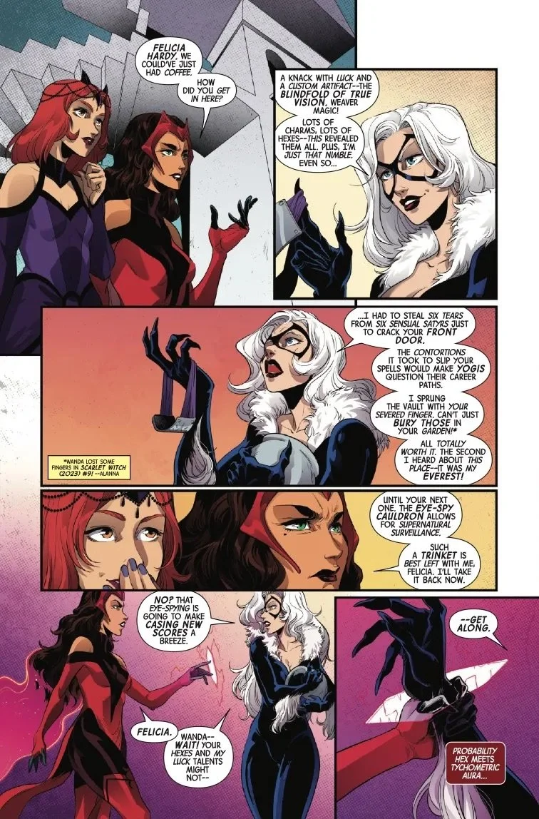 THE BLACK CAT STRIKES! Felicia Hardy has set her sights on the treasure trove of magical items that Scarlet Witch keeps in the basement of her witchcraft shop. But has this crafty cat bitten off more than she can chew? And what will happen when Wanda's ambitious apprentice Amaranth is drawn to a magical item that she's not ready to handle yet?