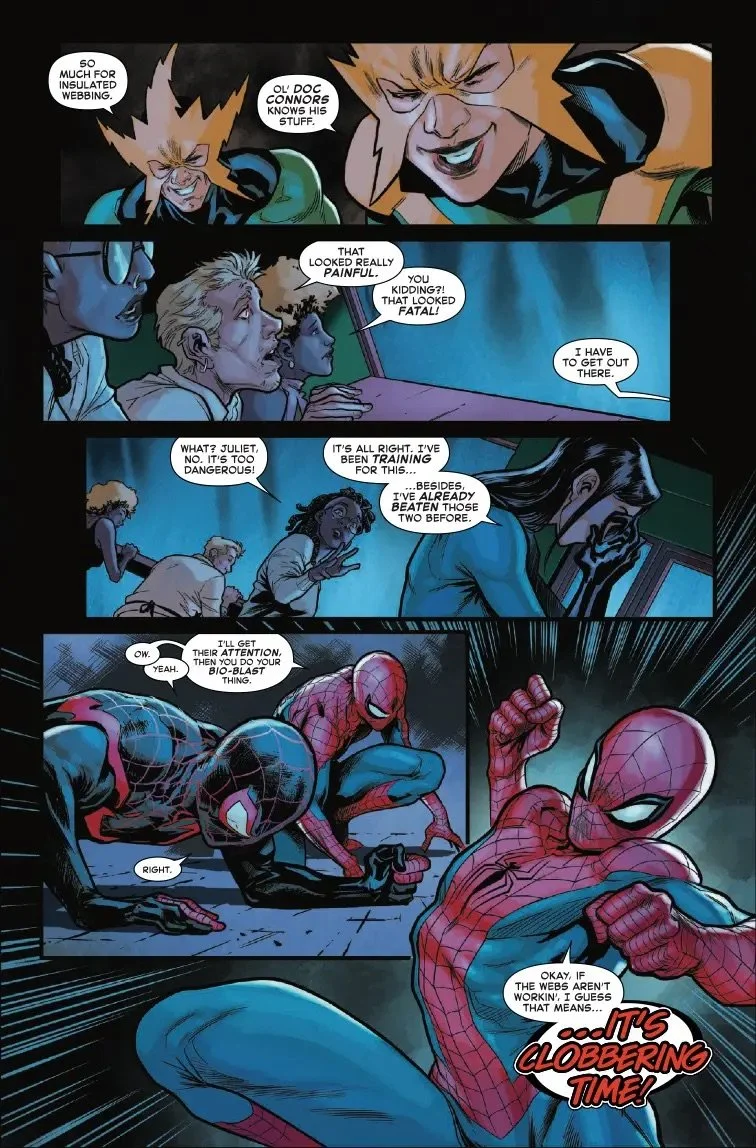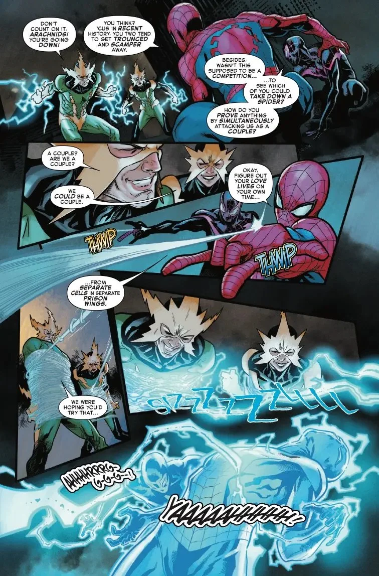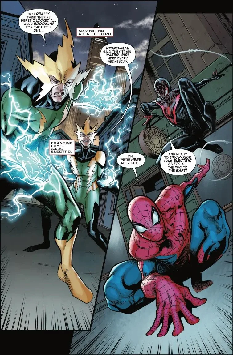 LEVEL UP! The only thing worse for the SPIDER-MEN than one ELECTRO - is TWO! And this electrifying tag team has LEVELED UP! The Electros aren't the only SINISTER and SHOCKING SURPRISE in store for Pete and Miles... Sssomone ELSE has a bone to pick with the Ssspectacular Ssspider-Men...