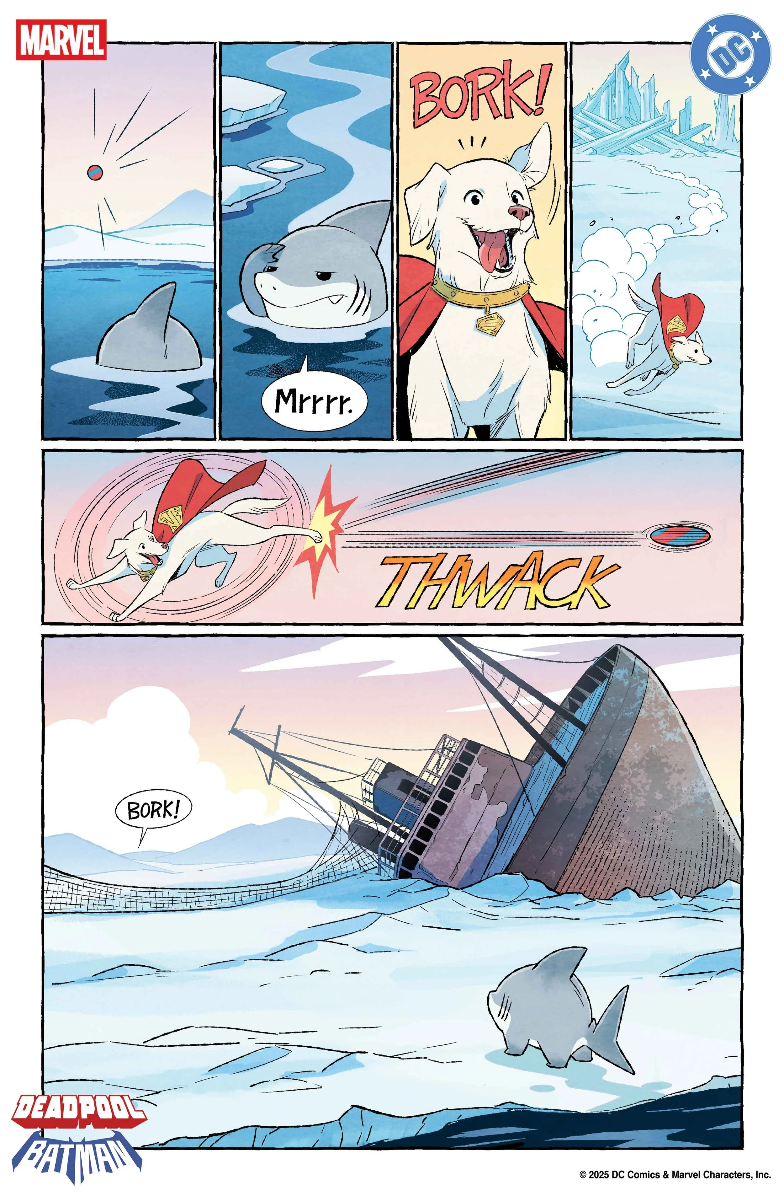 Marvel/DC: Deadpool/Batman #1 had it’s final three covers revealed by Marvel Comics, from superstar artists J. Scott Campbell, Pepe Larraz, and Esad Ribić. The publisher also shared a first look at interior art from the main story featuring the titular characters, as well as from backup stories featuring characters including Daredevil, Green Arrow, Jeff the Land Shark, and Krypto. The highly anticipated issue hits shelves September 17th and will be followed by DC’s DC/Marvel: Batman/Deadpool #1 in November.
