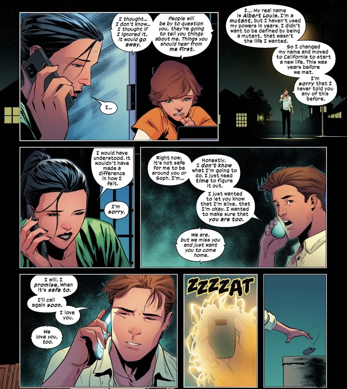 Brisson’s story also includes a meta-analysis of personal redemption for the core four Alpha Flight members. Throughout the team’s history, Alpha Flight has oscillated between a semi-serious and flat-out farcical group of superheroes depending on what Marvel has needed them to be. The issue sees this foursome making decisions with the goal of redeeming their reputation and it’s all written in a very sincere way. There’s also a touching storyline realized through the side-plot involving Albert Louis/Feedback dealing with the consequences of trying to hid his mutantdom from himself and how it affects his family and job.