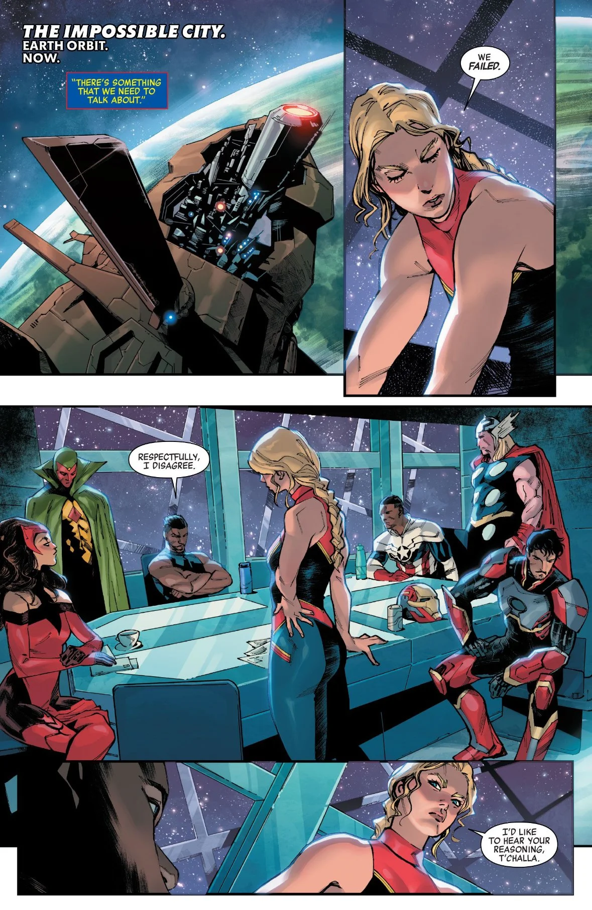 Jed MacKay's script is well paced, with plot foreshadowing and balanced character development. He expertly weaves together multiple storylines, paying off simmering tensions and setting the stage for a new direction as individual team members struggle with the losses they incurred during the events of Blood Hunt. Each Avenger is forced to confront their own limitations and how they view their role as a superhero and you can’t help but feel there will be tough decisions made that will have significant repercussions for the Marvel Universe.