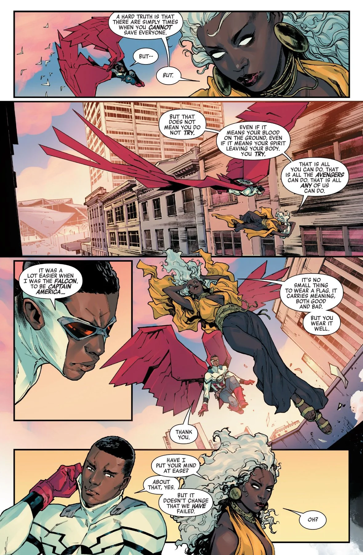 The various argument laid out by our heroes was very reminiscent to the build up towards Marvel’s iconic ‘Civil War’ storyline, where heroes where forced to choose between two very different perspectives. Sam’s reaction is likely to be one of the most consequential as his visit to Storm is what causes her to become the newest Avenger. It was a great way to tie in what happened to mutants during and after the fall of Krakoa and made a strong case as to why Storm joining the team makes perfect sense.