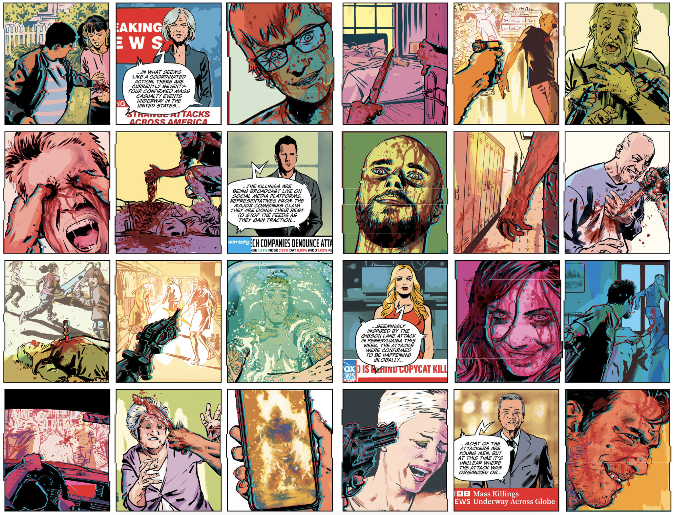 Fernando Blanco’s art and Jordie Bellaire’s colors are again strong. At times the violence in this issue edged on torture porn territory (think Hostel meets The Purge), which felt like overkill and turned me off. However, the scenes set in the future stood out because it painted the picture that things turn BLEAK after the events we see unfold here. Bellaire consistently shows why she’s one of the best colorists in the industry (with an Eisner Award to prove it).