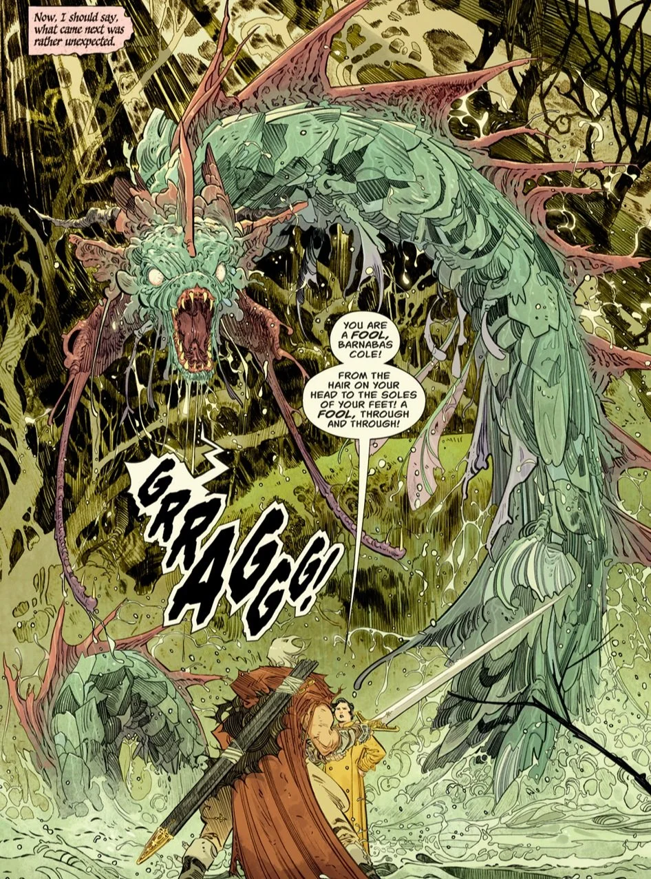 Meanwhile, Lilith's fearless protection of Helen is a stunning showcase of King's ability to craft strong, complex female characters. Her unwavering loyalty to her ward is inspiring, and her confrontation with Barnabas as he battles a sea monster serves as the issue’s dramatic climax.
