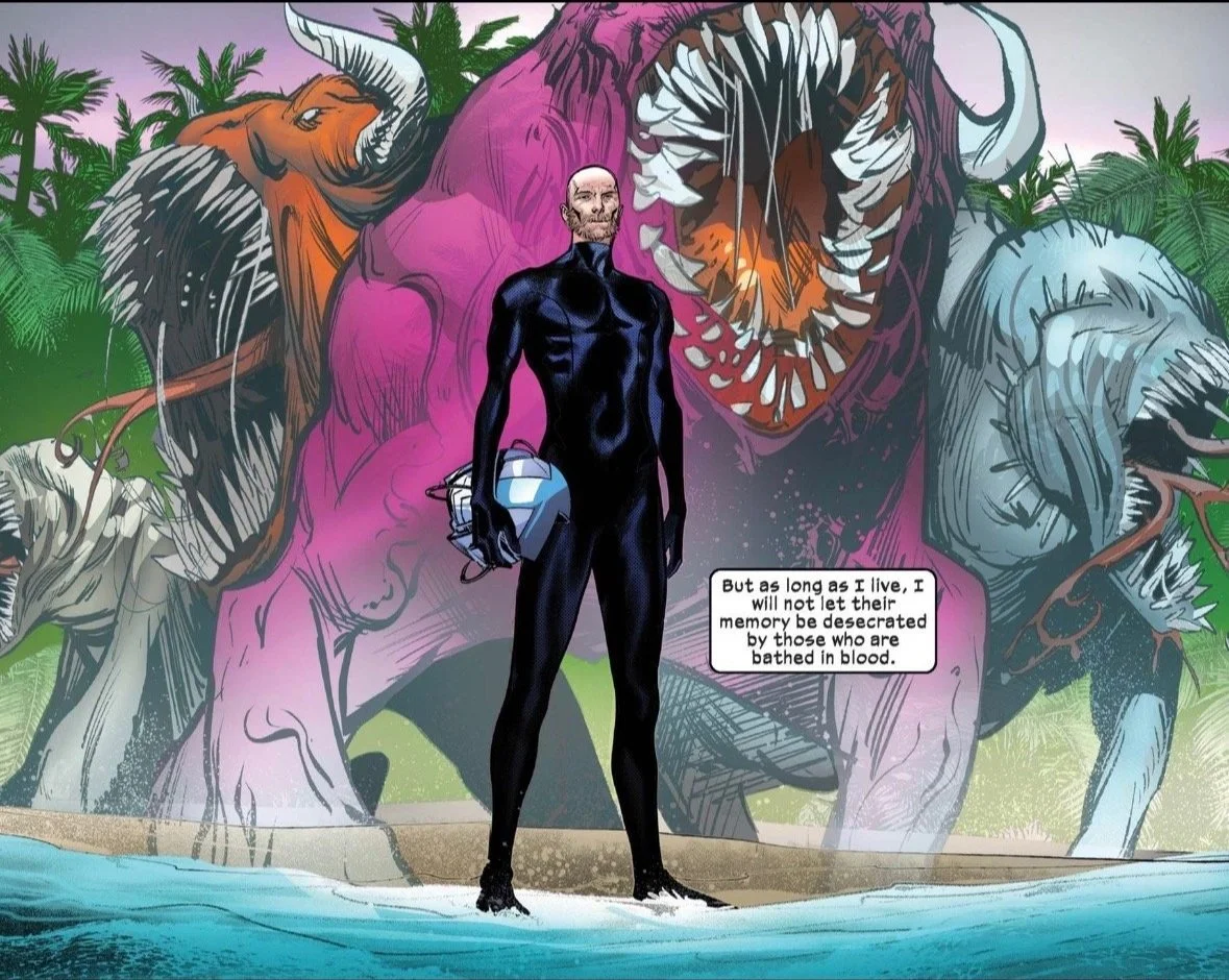 Later in the book, we learn that Xavier has created telepathic monsters to defend the island and scare off ORCHIS henchman and others who may wish to try and claim the island as their own now that the island’s former mutant population has been displaced. It’s an interesting show of force by Xavier. Gillen is showing that while he’s broken, he’s still willing to defend the island he helped shape. His actions seem innocuous at first but they beg the question of what really meant more to him? Ruling Krakoa itself or the mutants he brought to it? If Gillen starts to explore that grey area, we could be in line for a very fascinating look at who who Charles Xavier is in this new world.