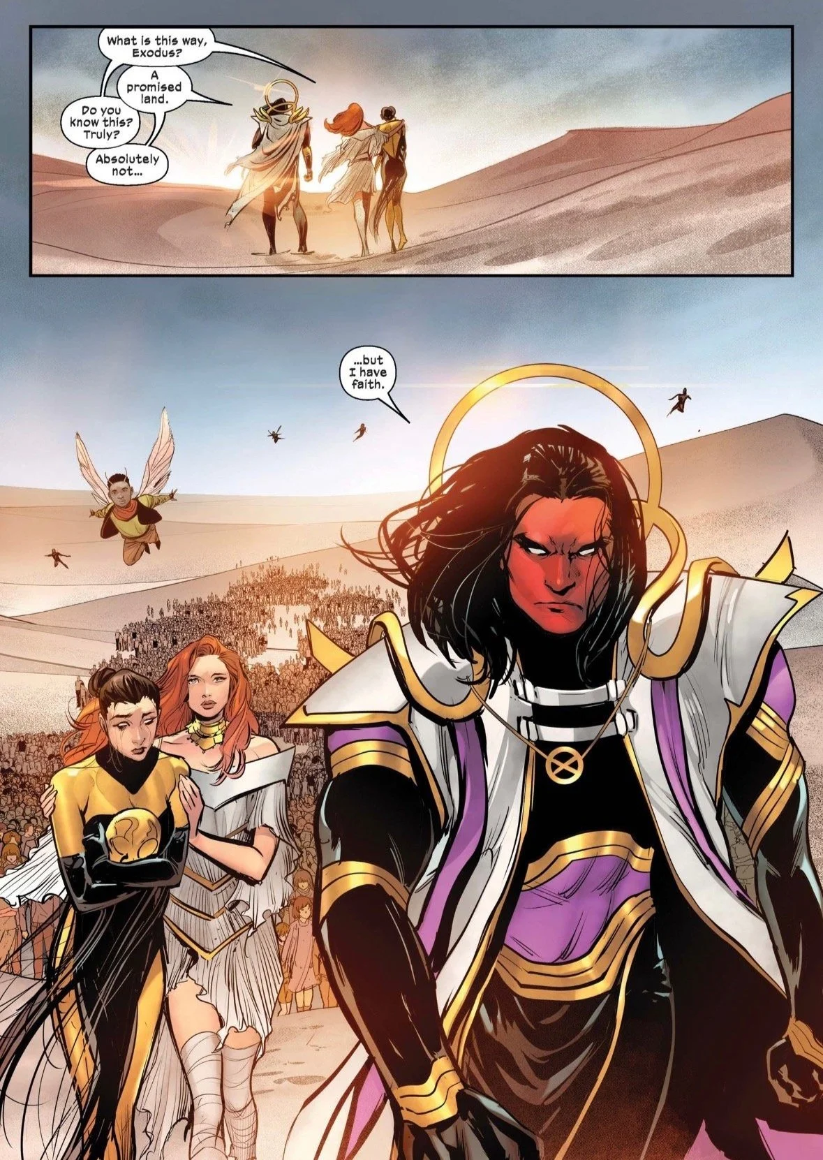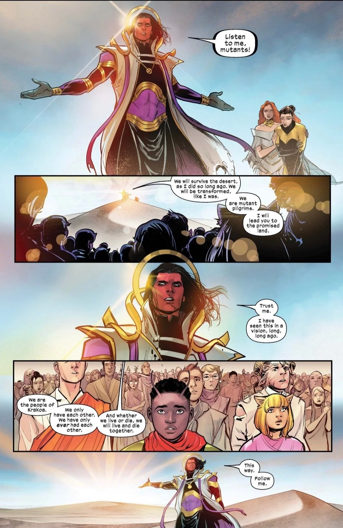 The final story within this issue see Exodus, Hope, and Destiny abandoned in the middle of a desert with 250,000 other displaced mutants who passed through Krakoan gates after Xavier’s plea during the Hellfire Gala. In a biblical scene that would make Mel Gibson proud, Exodus assumes the role of leader and promises to guide the flock of mutants to a new promised land. I’ve really enjoyed Gillen’s work building up Exodus over the past year or so. He’s become more than a religious zealot caricature and offers one of the most nuanced and complex views on the mutants’ current situation. I’d love to see what he does as a reformed leader who assumes responsibility and it looks like he’s going to get that chance.