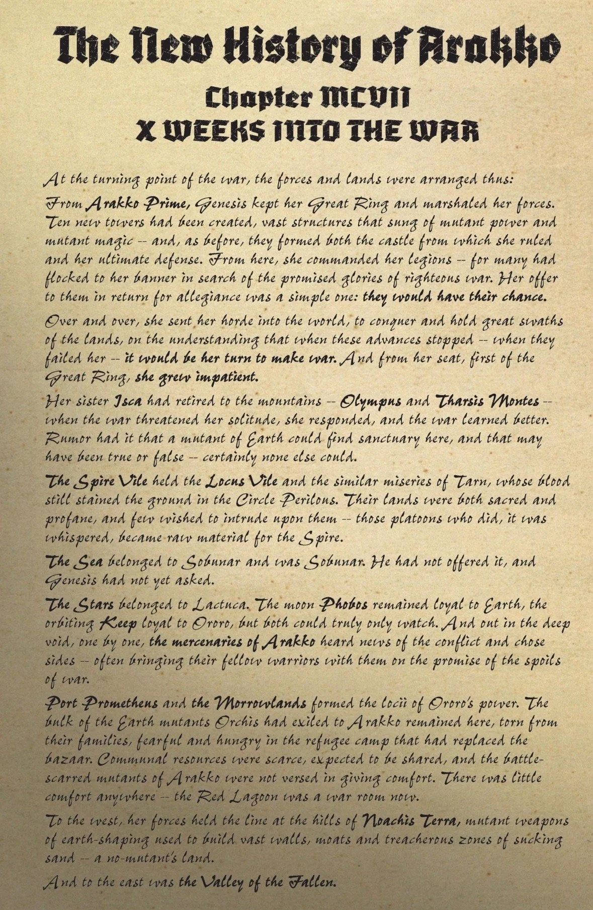 The rest of the book is action-packed as we witness the Battle of the Fallen occurring on Day 70 of the war. The sides appear to be at a stalemate until Storm arrives and unleashes her Omega-level powers, while still holding back to show that mercy (or weakness as Genesis would call it) is what defines those who wish for peace. After the battle, Storm and her forces are planning for Genesis’ next attack when a very different looking Fisher King arrives with an ominous declaration.