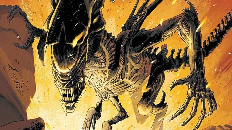 Declan Shalvey and Danny Earls will explore the mystery and methods of the new subspecies of Xenomorphs in the double-sized ALIEN ANNUAL #1 coming this October from Marvel. Alongside artist Andrea Broccardo, Shalvey introduced this new subspecies during the current run of the main ALIEN comic series. Check out the main cover art by Declan Shalvey of the annual below!